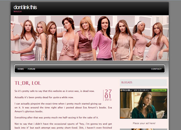 Over the years, these E/N websites fell away, one by one, until only two were left standing. F.U.B.A.R and The FAT Website. Both websites changed in tone and content over the years. The FAT Website was known as Spy Magazine for two years. F.U.B.A.R became Bad In A Good Way and eventually settled as Don’t Link This. Justin was never really the caliber of blogger that we have on TFW and he would periodically quit the site. But just like Ric Flair, he would come out of retirement six months later.