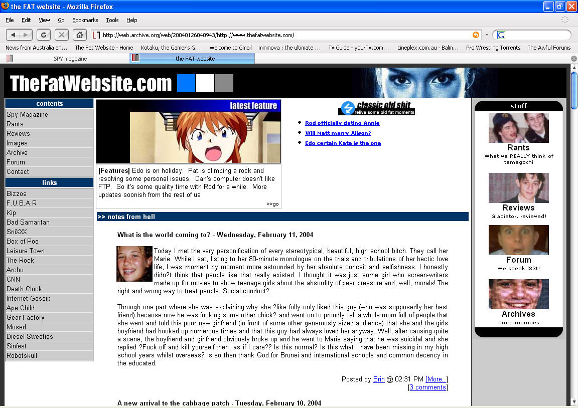 If you’re a long time reader of The FAT Website, and I mean you were there with us twelve years ago, you would remember that TFW was part of a gigantic thriving community of websites that were categorized as ‘E/N’, an abbreviation for Everything/Nothing, the name given to turn-of-the-century blogging.
