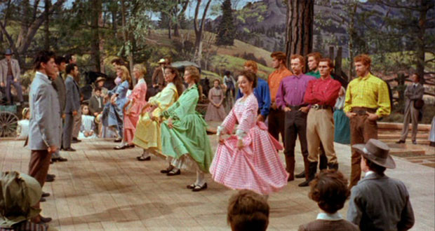 I recently wrote a review of The Man Who Shot Liberty Valance where I commended The Duke’s stoic and understated performance. I love Seven Brides For Seven Brothers for precisely the opposite reason. Everyone here, from Howard Keel to Jane Powell to every brother and bride really gives an enourmously animated and bombastic performance. They belt out show tunes with gusto, dance like no ones watching and brawl with the showmanship of a seasoned pro wrestler.