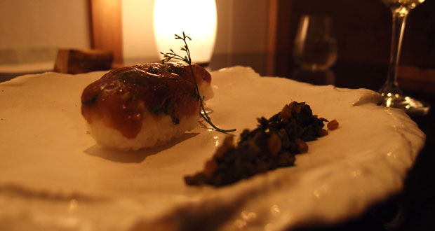 sakana, seri leaf, satsuma potato, yuzu emulsion