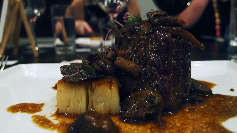 Slow cooked fillet of beef, sarladaise potatoes, shaved truffle & fricassee of mushroom