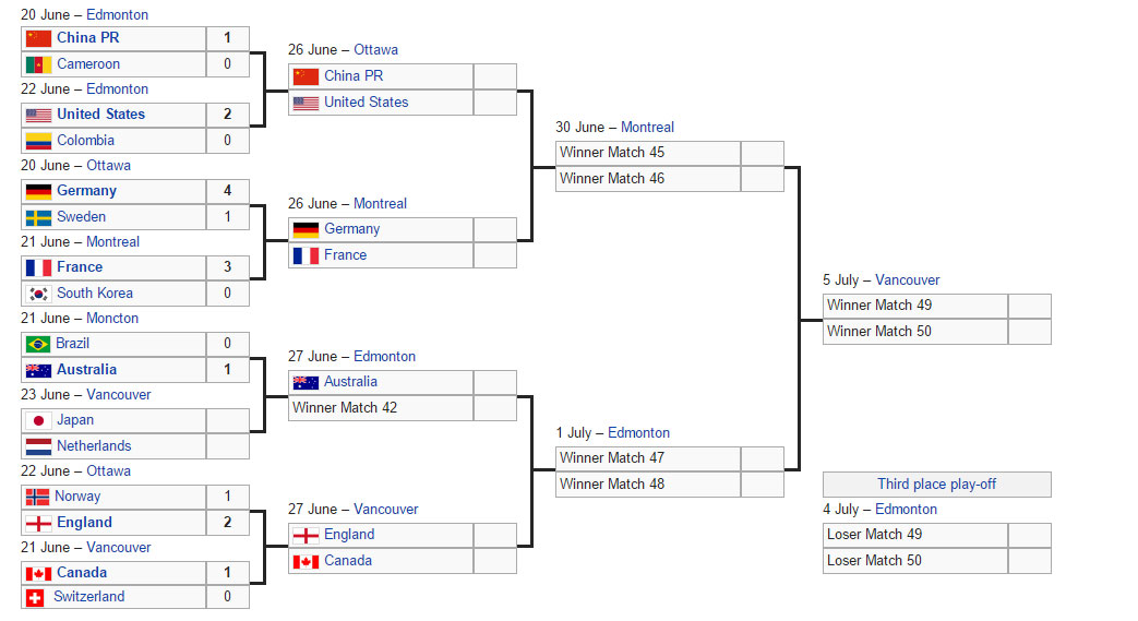 With the increasing popularity of the sport and the added investment of money and time, the women’s game has come a long way as can be seen by some of the quality goals that have been scored in this tournament so far. France, in particular, deserve special praise for dismantling Korea 3-0 in the Round of 16 in truly eye catching fashion. All three goals were team efforts constructed with one touch passing, sublime footwork and clever link up play. Of course the tournament has also had its share of terrific long range goals too. The developing nations have some work to do still (as can be evidenced by a couple of blow outs during the group stage) but the top tier teams are all entertaining to watch and worthy of your time. The game has never been played at a higher standard.