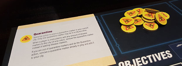 February introduced the ‘quarantine’ mechanic. Basically it gives a city a reprieve from getting additional virus cubes, no matter what its current level. In addition to quarantines, a new playable character – the quarantine officer – was introduced. Jules switched from playing as the generalist to playing as the quarantine officer. Their ability to remotely quarantine cities would really come in handy.