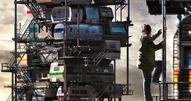 I don’t know who made it but I love the illustration on the cover of Ready Player One which shows the protagonist Wade Owen Watts scaling the scaffolding around a tower of mobile homes. I think it does a wonderful job of setting the scene for this sci-fi adventure about a world so bleak that people have retreated into the confines of virtual reality to enjoy life in an online universe instead.