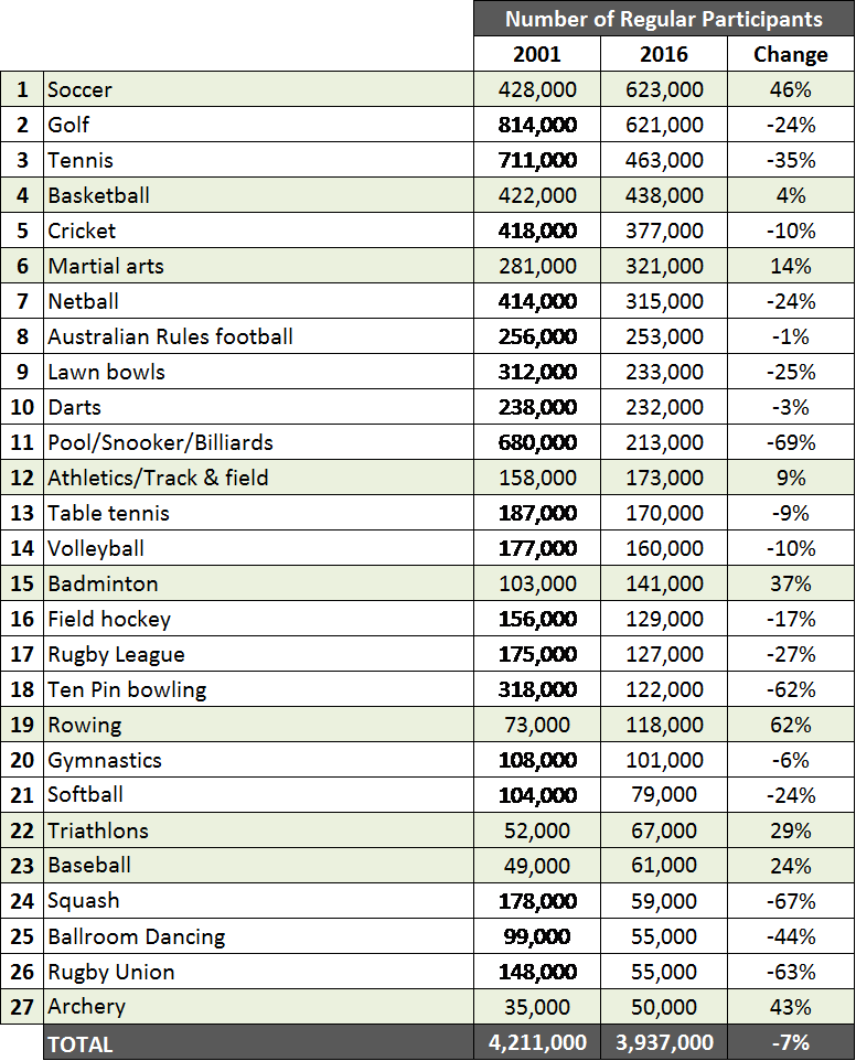 At a grass roots level, the game has had a seismic collapse in participation rates with men, women and children abandoning the sport in droves. The number of people who play rugby in Australia is now a paltry 55,000, which makes it the 26th most popular sport in Australia, where it’s slightly less popular than ballroom dancing and just above archery.