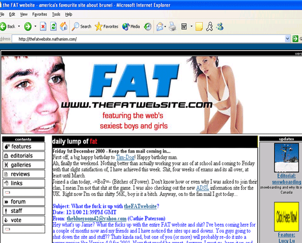 Edo’s FAT Website was short lived and by the start of 2000, The FAT Website was born.