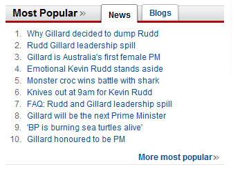 Our first full day with Prime Minister Gillard Posted by: Edo in Blog June 25, 2010 2 Comments Rudders: Relegated to the back bench 🙁 Tilda Swinton There are only a couple of other topics getting coverage in the Australian media politics 2010-06-25 Edo
