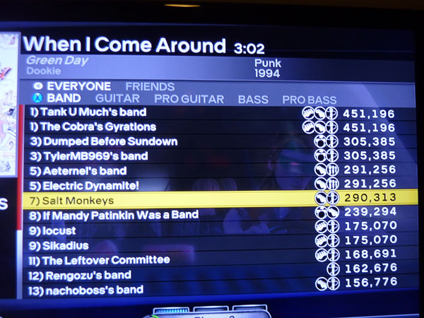 Whats kinda cool is that after the crappy distribution deal we got in Australia where Rock Band 2 wasn’t even released for some reason (I had to buy my copy in the UK), Rock Band 3 actually came out in Australia before anywhere else in the rest of world. What this means is that for a short period of time, every song Jen and I play, we usually rank in the leaderboards as being one of the top ten scores in the world.