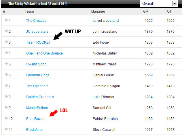 Not having Siddle and Haddin killed me. Plus I had two players that didnt even get selected!