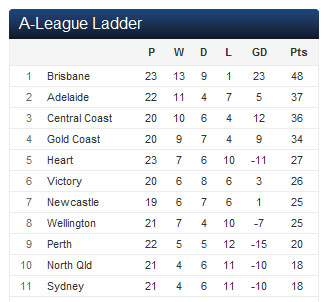 In the other match of the round, Adelaide lost 2-0 away to the Mariners. It was Adelaide’s fourth defeat in five games, the 2-0 capitulation at the hands of the Mariners being capped off by an owngoal from ex-Roar striker Sergio Van Dyk. The Red’s defeated means that the Roar stretch their lead at the top of the table to a formidable 11 points.