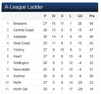 Anyway, both sides came into this game with plenty to play for. The Roar need six points from four games to wrap up the season and a win or a draw would see them tie the all-time Australian football league record from 1987 of twenty two games without a loss. For their part, the Wellington Phoenix currently lie 7th in the table, one point adrift of the teams destined for finals football.