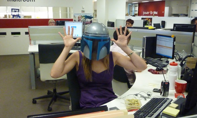 Although the Academy Awards air on a Sunday night in America, when you account for the time difference, it actually occurs on a Monday morning in Australia when we are at work. So our team decided to have a bit of fun and indulge in a movie themed day where we had popcorn, DVD and movie ticket giveaways and a bit of dress up. Myself and the other two managers decided to go in Star Wars themed outfits. I’ve yet to get my hands on a photo of my Boba Fett costume but here’s a couple of pictures to help you get an idea of how it turned out. I think we looked pretty awesome.