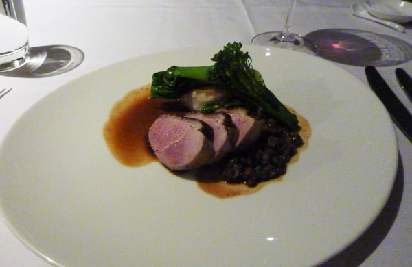 Roast Best End of Milly Hill Lamb and Four Hour Braised Shank with Eggplant Confit, Celeriac, Parsnip and Garlic Crumble, Garlic Jus
