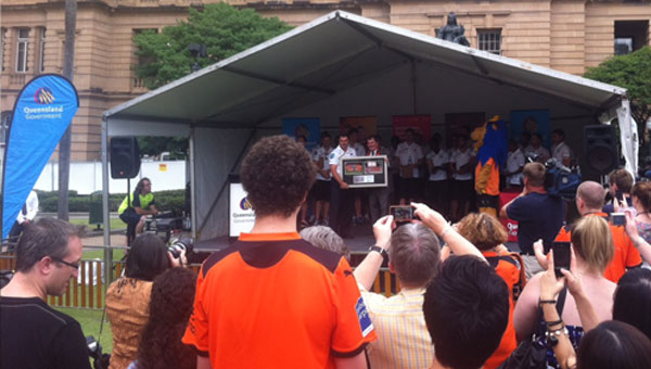 This week they held a special ceremony in the centre of town where the team were presented with a novelty-sized plaque, colour-printed certificates on A4 sheets of paper and a special thanks from the state sports minister. Jen and I also managed to get down there and be part of the action.