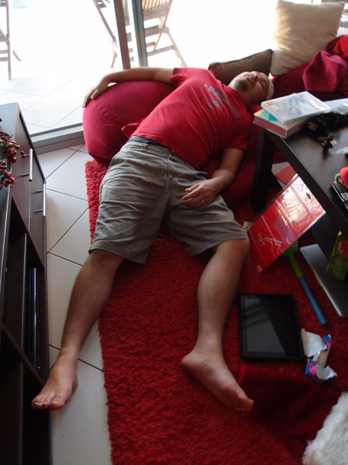 Christmas Day in the Inoue household was spent at home with Jen’s siblings. Although Jen and her mum Karen raised the bar for Christmas meals with an awesome seafood feast last year, I think she outdid herself once again this year with what she prepared. My glorious wife laid on a six course all day meal, starting with a croissant and finishing up with a dessert combo from Matthew and Sarah. Fortunately, this year I was able to capture it in all its glory thanks to a terrific new Olympus camera that Jen got me as a prezzie. As with many past years, I was spoilt absolutely rotten by Jen, her family and my parents.