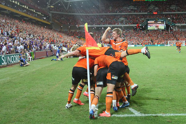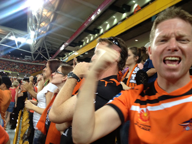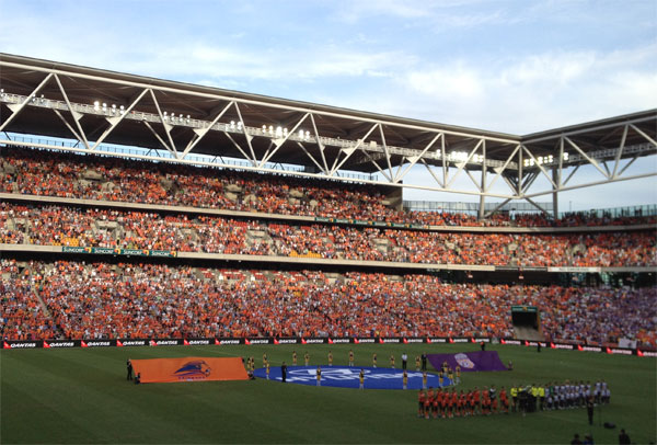 The game was dubbed Orange Sunday II by the fans. Just as last year’s home final, the game was a sellout with over 50,000 fans in attendance. There was also a decent sized cluster of Perth Glory supporters in attendance – some 2,000 fans making the six hour flight to get to Brisbane. The stadium was heaving, the crowd was in good voice and the stage was set for a thriller. It wasn’t quite the spectacle we hoped for but it certainly offered up its share of drama.